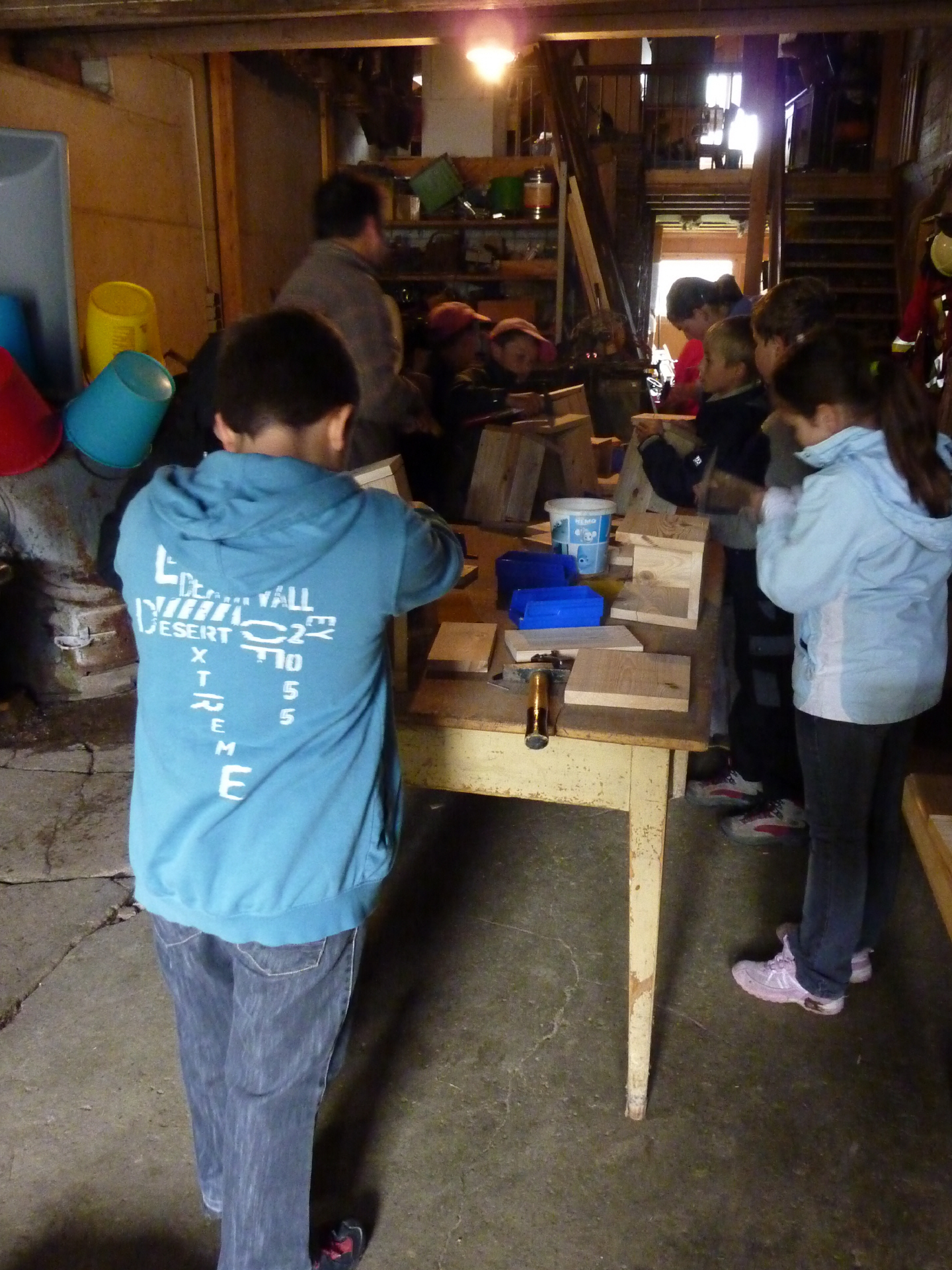 Mit dieser Werkstatt können wir überall hinfahren und an einem Fluss oder im Wald unsere Workshops mitten in der wunderschönsten Natur machen. Pfeilbogen und Wildholzmöbel können ebenso gut wie Nistkasten und Spielzeuggewehre in dieser Werkstatt zusammengebaut werden.